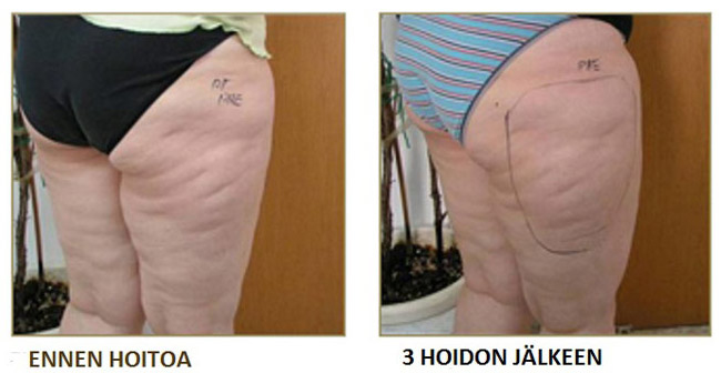 Hoidon jälkeen juotava runsaasti vettä! Suositeltava hoitoväli 1-2vk. Voidaan yhdistää Radiofrekvenssihoitoon!