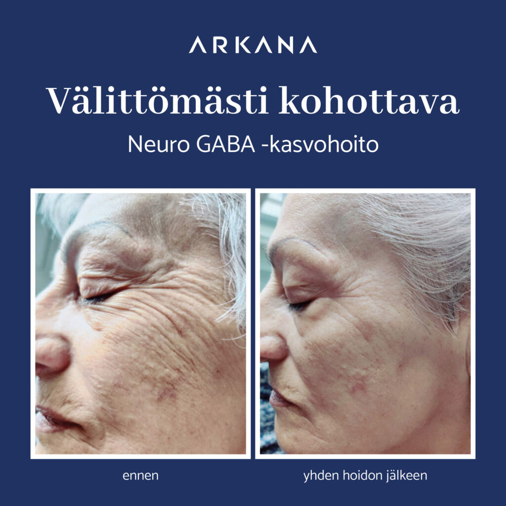 NEUROGABA kohottava, botox vaikutus, rentouttaa ilmelihaksia, tasoittaa ihonväriä. Hoito aloitetaan käänteisesti jähmettyvällä naamiolla, mikä mikrohieroo ihoa ja jumppaa kasvojen lihaksia. Verenkierto ja lymfa paranee. Hoito kykenee korjaamaan hyvinkin veltostunutta ihoa.